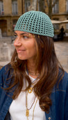 Un bonnet crocheté à la main dans le sud de la France avec passion.